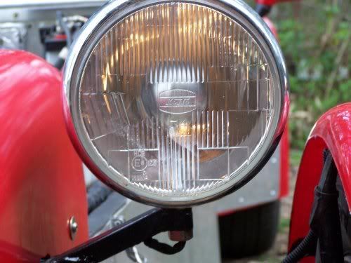 I have mounted some very nice vintage side lights on the front mudguards but Earl thought it better to have park lights in the headlights so I added them in addition to the ones on the Guards.